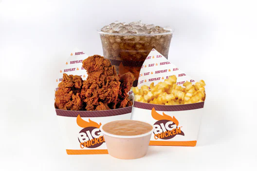 Big Chicken Sauce and Pickles. Served with fries, NO drink